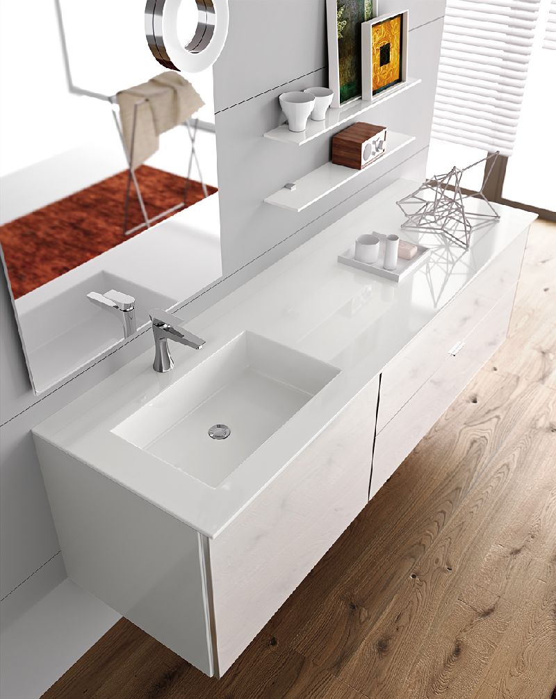 The wise combination of lines, geometrics and formal balance attracts and surprises the observe. the bathroom is furnished, without useless ornaments, for an effect that never goes unnoticed.