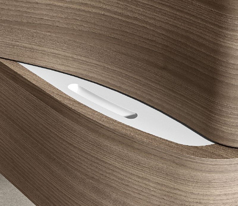 The continuous curvilinear manufacture without any joinings is a precious feature which gives lightness to the furniture with delicate natural lines. The warmth of the wood for a playful composition.