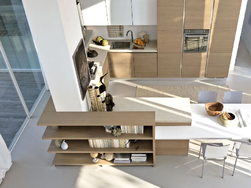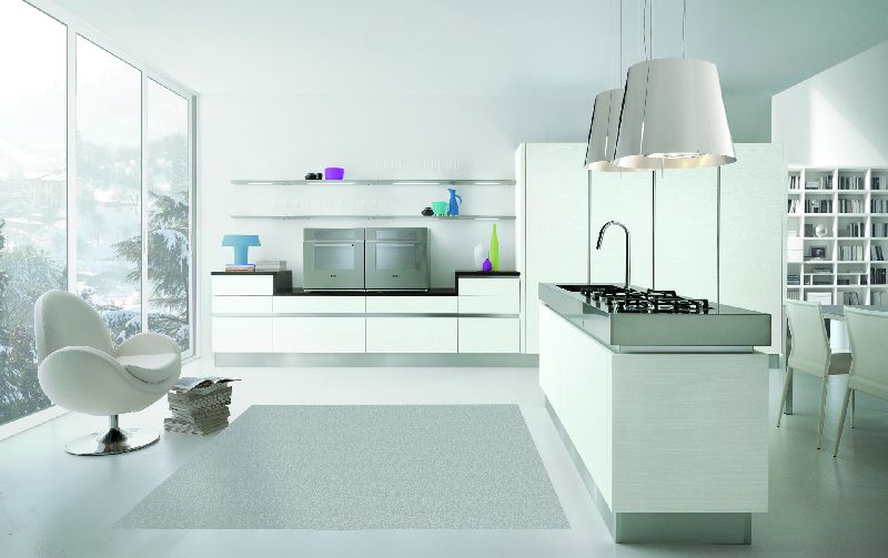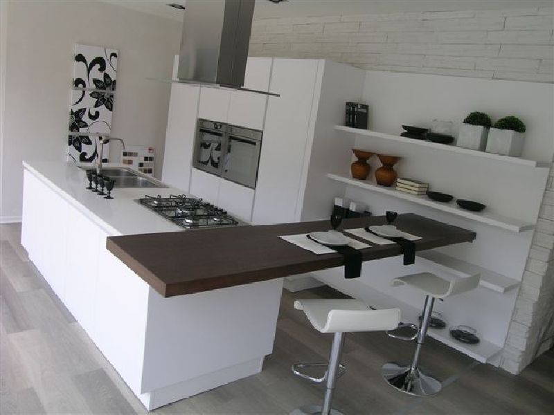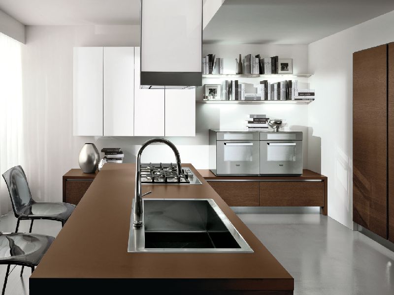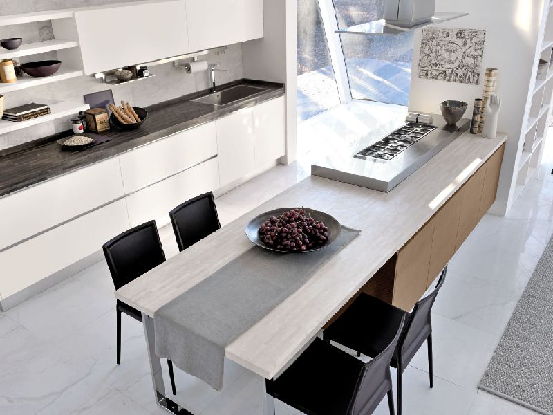 The innovation of an intelligent project that revolutionises the modern kitchen concept: an island that contains the washing and cooking zones has a mechanism that allows it to be easily transformed into a large snack top and work zone.