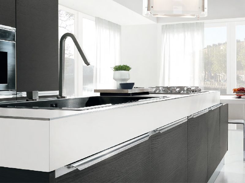Clean and elegant contours, solid geometry and quality materials, all in the name of good taste. Conceived for the more refined palate, the Pamela model features an infinite number of aesthetic combinations which maintain an overall sense of simple style, without ignoring the technological base and volumes of truly professional kitchens.
